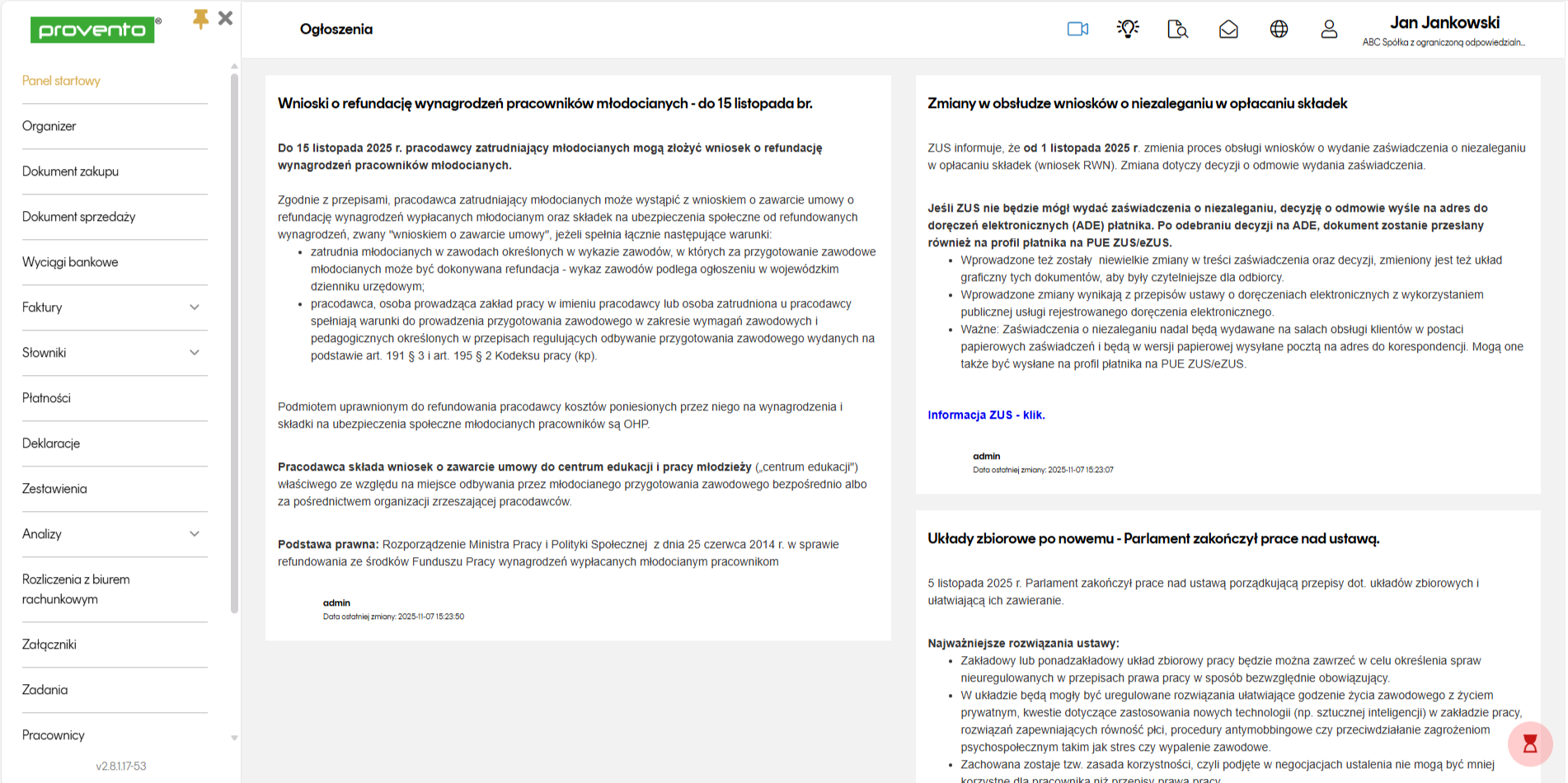 - Wiedza w Panelu. W Panelu Klienta znajdziesz sekcję "Ogłoszenia" z gotowymi analizami zmian w prawie. Sprawdzasz, kiedy chcesz.
